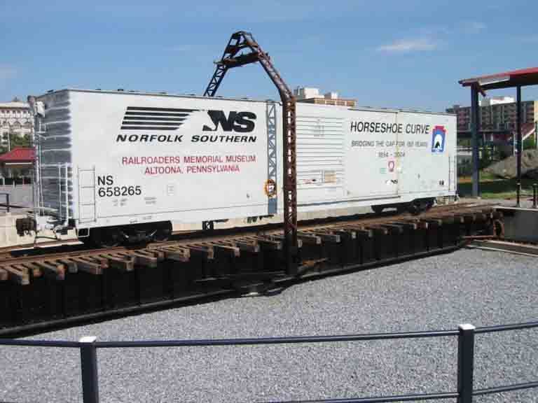 Note: It can be seen in front of the Roundhouse over the track that goes through the Harry Bennett Memorial Roundhouse past Altoona Pipe and Steel Building.