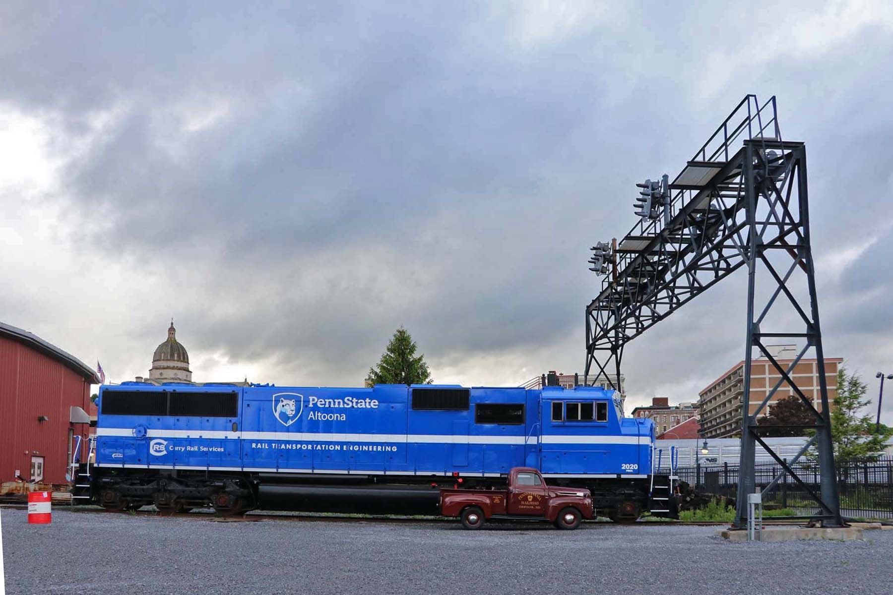 Nicknamed Big Blue, this diesel electric locomotive was built by Conrail in 1995 and then was owned by Norfolk Southern Corporation. Under Conrail it has the Road Number 5582 and under Norfolk Southern it was 6721. It was donated, in 2020, by Norfolk Southern to the Rail Transportation Engineering (RTE) Program of Penn State Altoona to be used as a hands-on lab for the students. It was painted at Curry Rail in Hollidaysburg, Pa into the Penn State Altoona color scheme with RTE Program markings and given the Road Number 2020. This locomotive will be accessible for the RTE students for classes. It is owned by the Railroaders Memorial Museum.