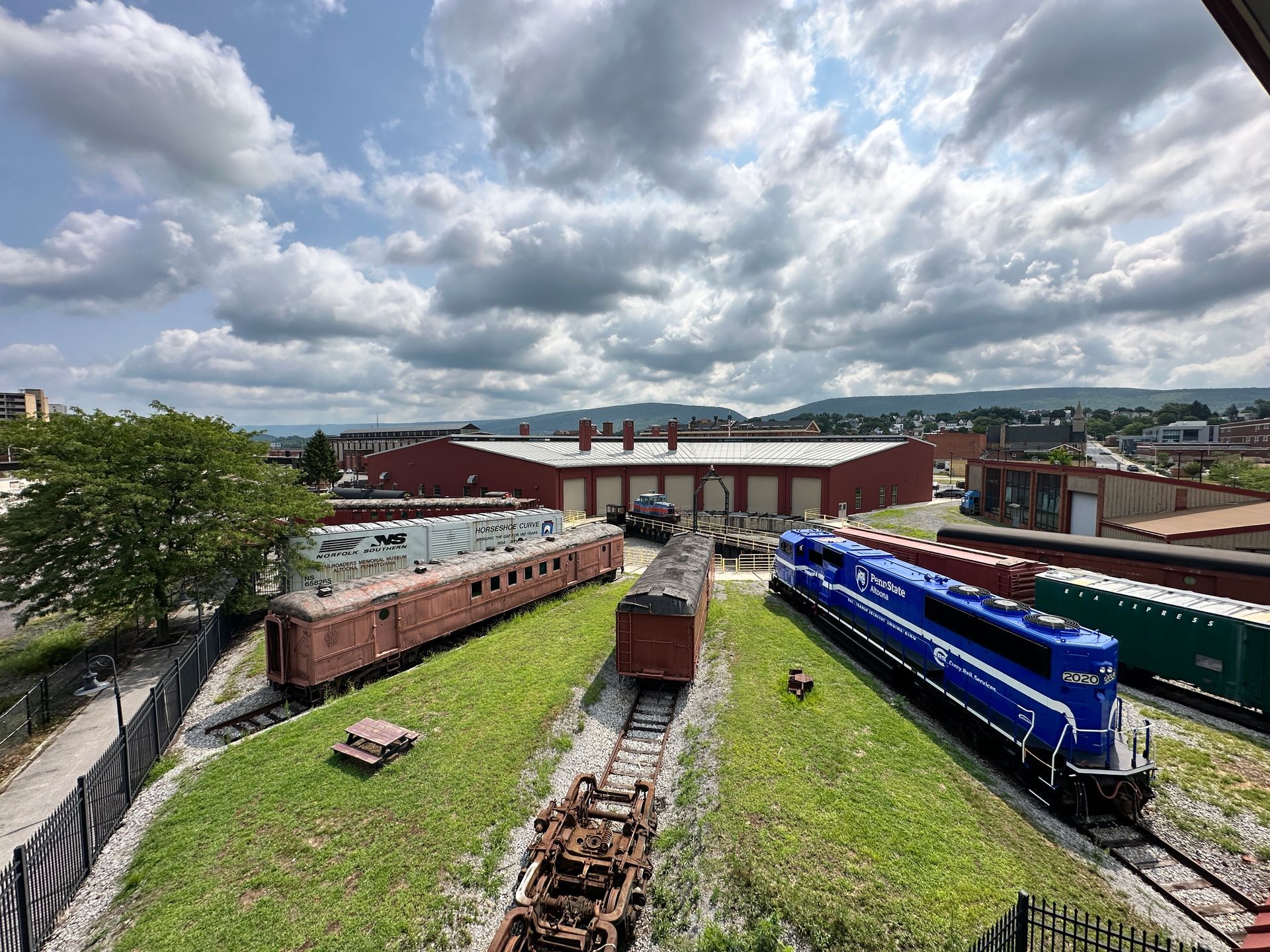 Note: It can be seen in front of the Roundhouse over the track that goes through the Harry Bennett Memorial Roundhouse past Altoona Pipe and Steel Building.