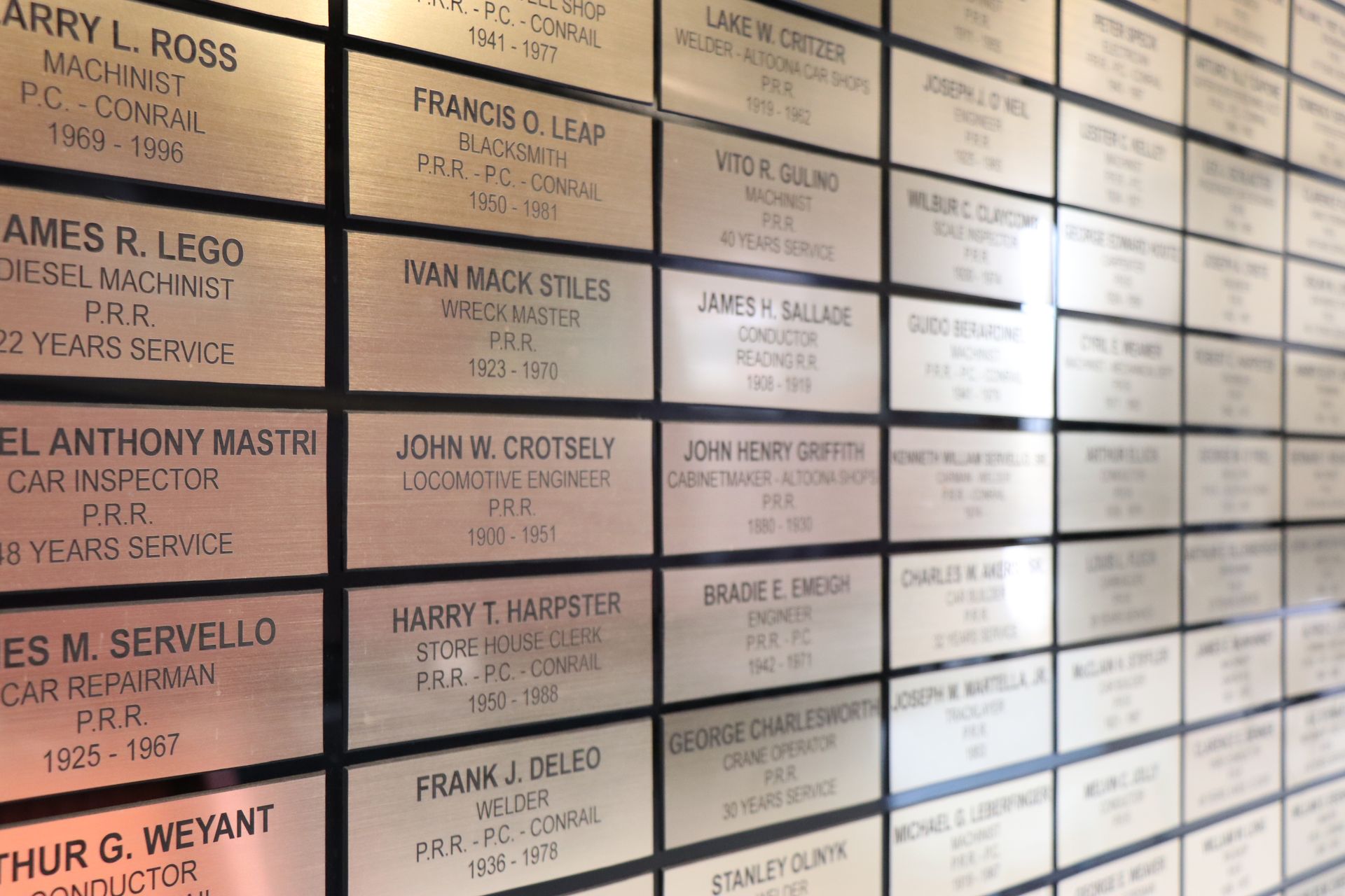 For a one-time donation of $100, you can put a family member who worked for the railroad, like the Pennsylvania Railroad, Penn Central, Conrail, Norfolk Southern, etc. This tribute to your ancestor would memorialize them in Railroad City.